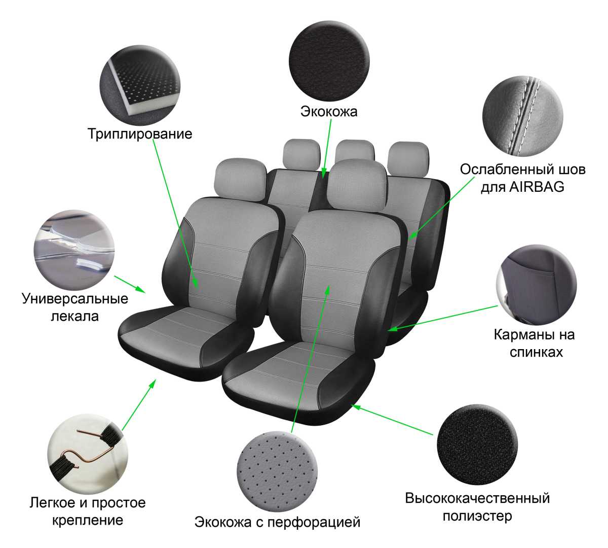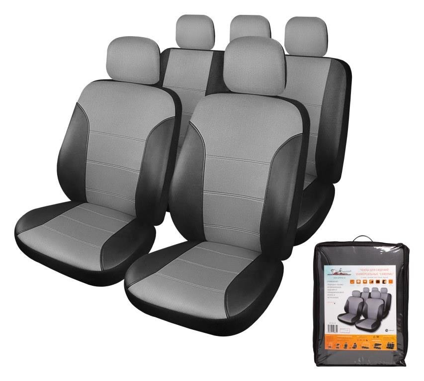Чехлы на сиденья универсальные CARDINAL, 11 пред., экокожа, цвет серый/черный Airline ACSUEL03