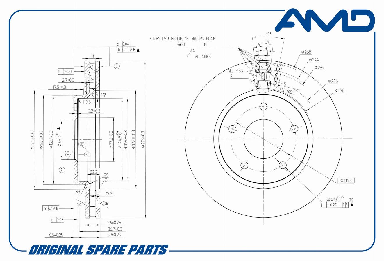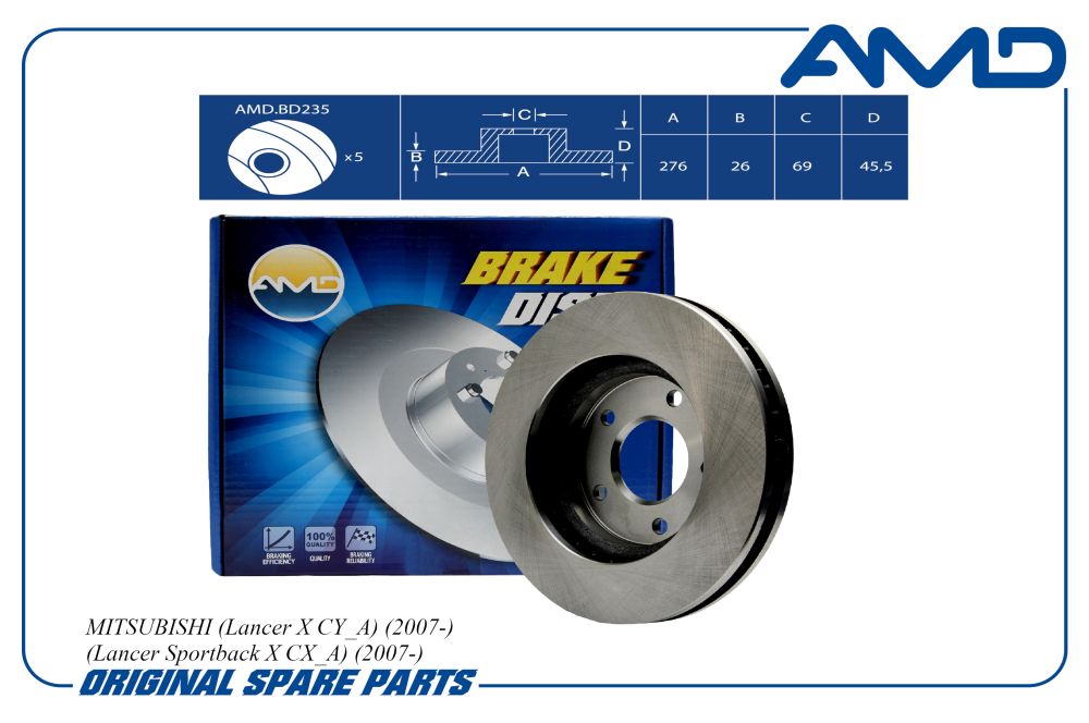 Диск тормозной 276*24 5отв. передний вент. Mitsubishi Lancer 1.5/1.8/2.0 Di-D 08> AMD amdbd235