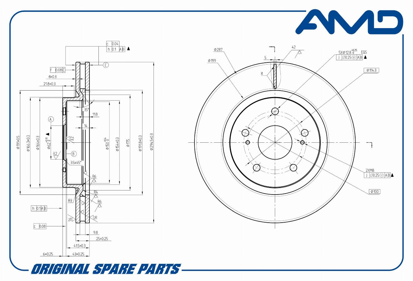 Диск тормозной передний 294*25 5 отв.Suzuki Grand Vitara1.6/2.0/1.9D 05> AMD amdbd395