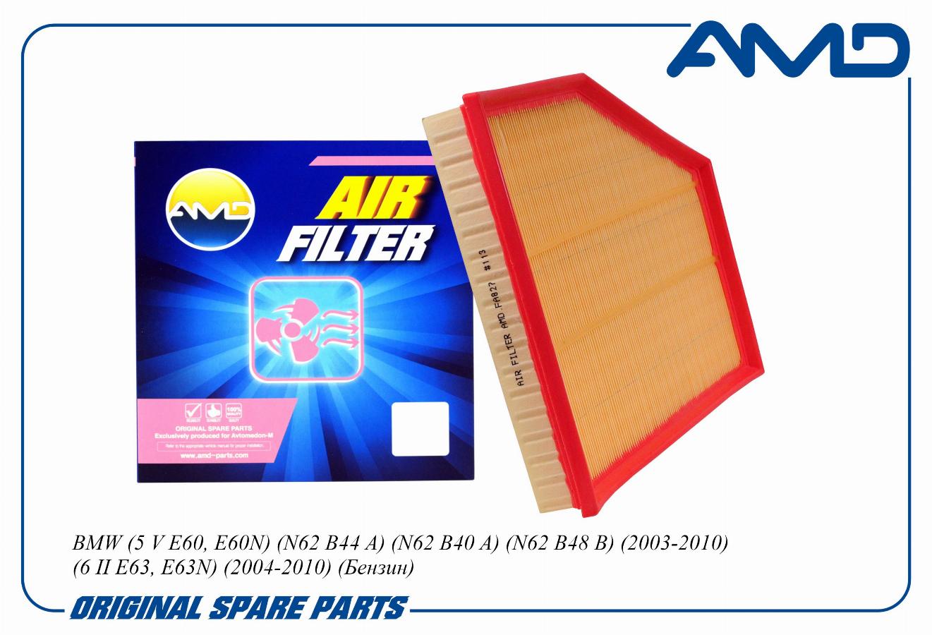 Фильтр воздушный BMW E53/E60/E63 2.0i/4.0i/4.5i/4.5Ci/5.0i 03> AMD amdfa827