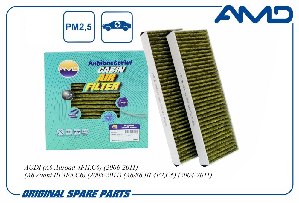 Фильтр салонный (антибактериальный, угольный) (2шт) AUDI A6 Allroad 4FH,C6, 2006-2011, A6 Avant III 4F5,C6, 2005-2011, A6/S6 III 4F2,C6, 2004-2011 AMD amdfc789a