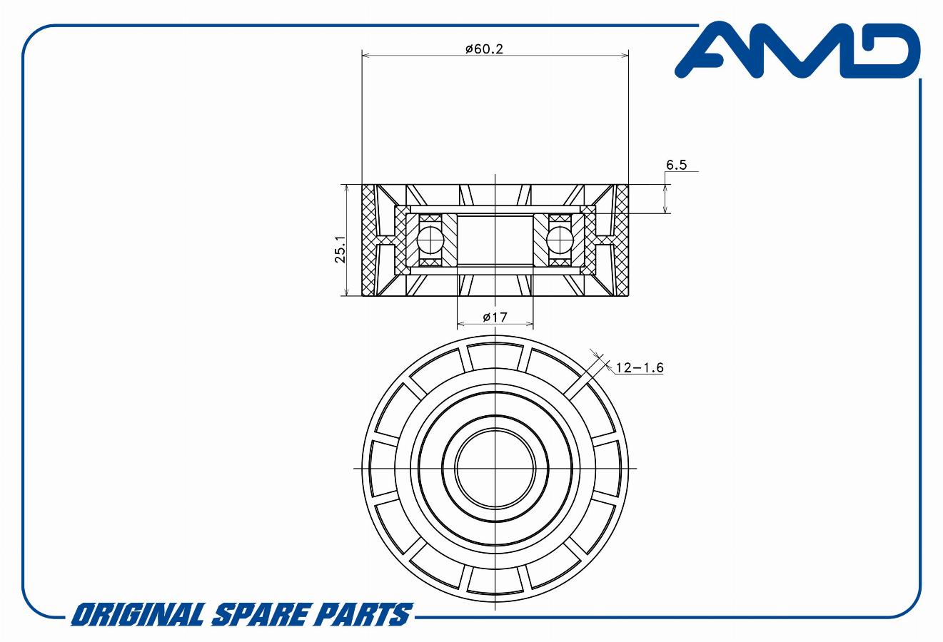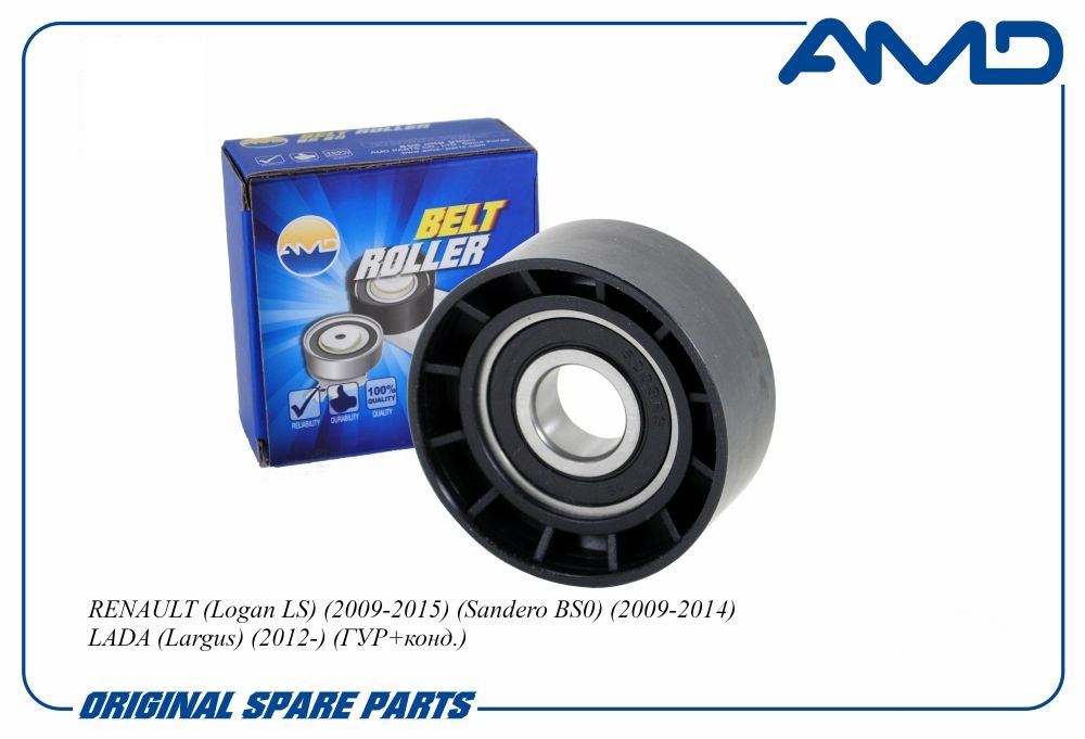 Ролик ремня поликлинового направляющий RENAULT Logan LS, 2009-2015, Sandero BS0, 2009-2014, LADA Largus, 2012-, ГУР+конд. AMDGT222 amdgt222