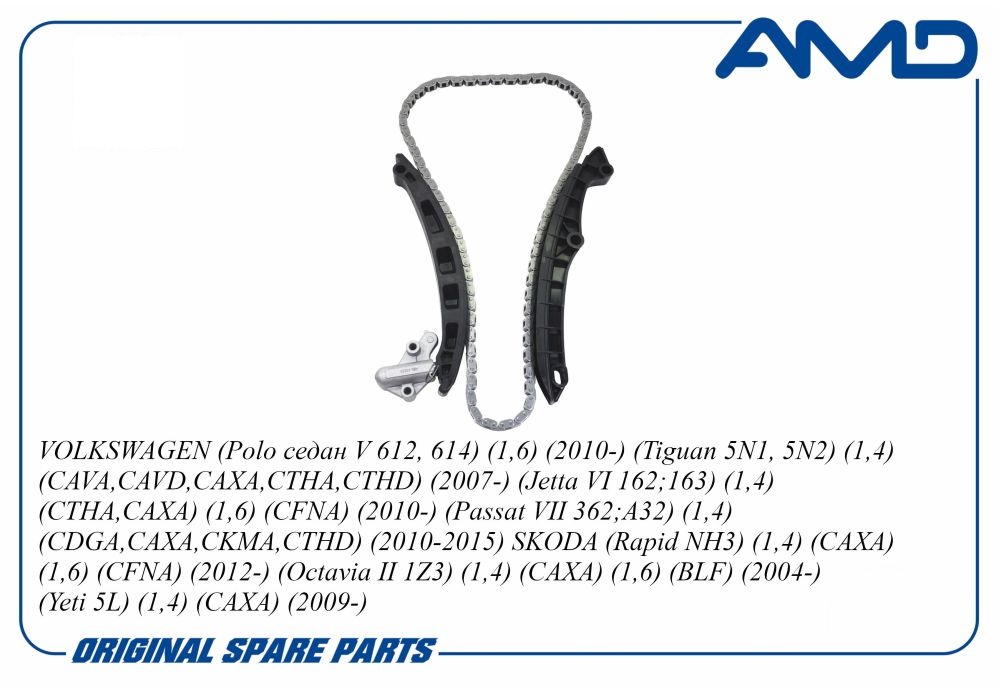 Комплект цепи ГРМ VAG Polo седан 10-, Octavia/Fabia, Golf/Passat 1.4-1.6 (цепь, натяжитель, два успо AMD amdkitcs27