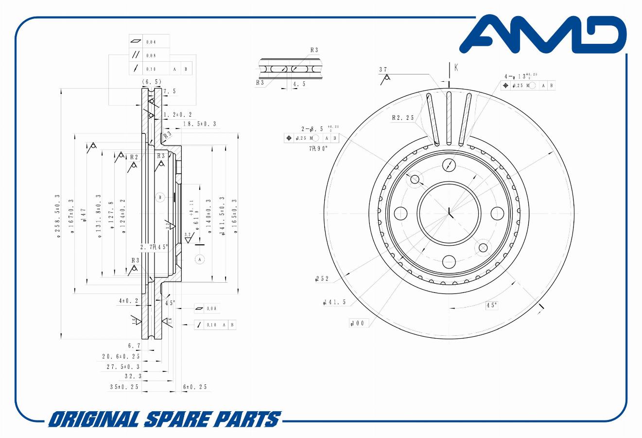 Диск тормозной D=259 передний Renault Clio/Megane/1.4-1.9TDi 90>/Logan 04-/Lada Largus 12- AMD amdsportbd5286