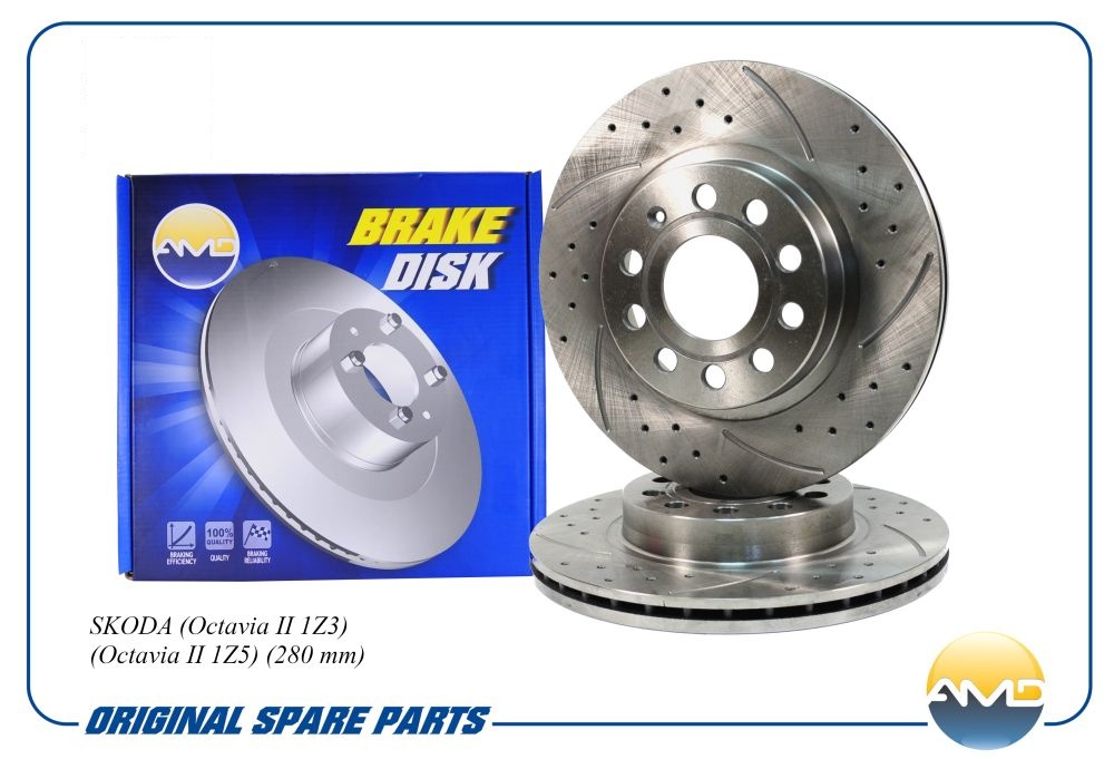 Диск тормозной передний Skoda Octavia (1Z) 04-/VW Golf V (1K), VI (5K) 03-/VW Jetta III (1K2), IV (162,163, AV) 05- AMD amdsportbd5293