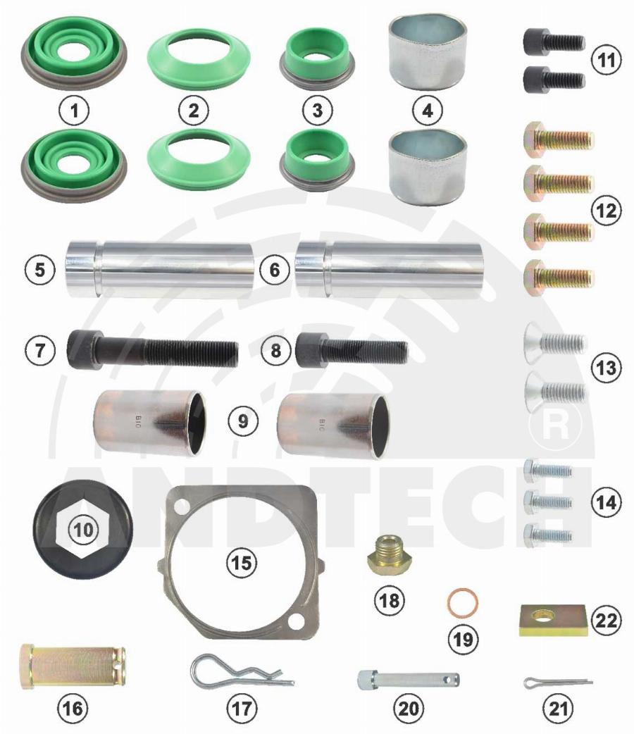 Ремкомплект дискового тормоза с направляющими DX195 ANDAC 081020123