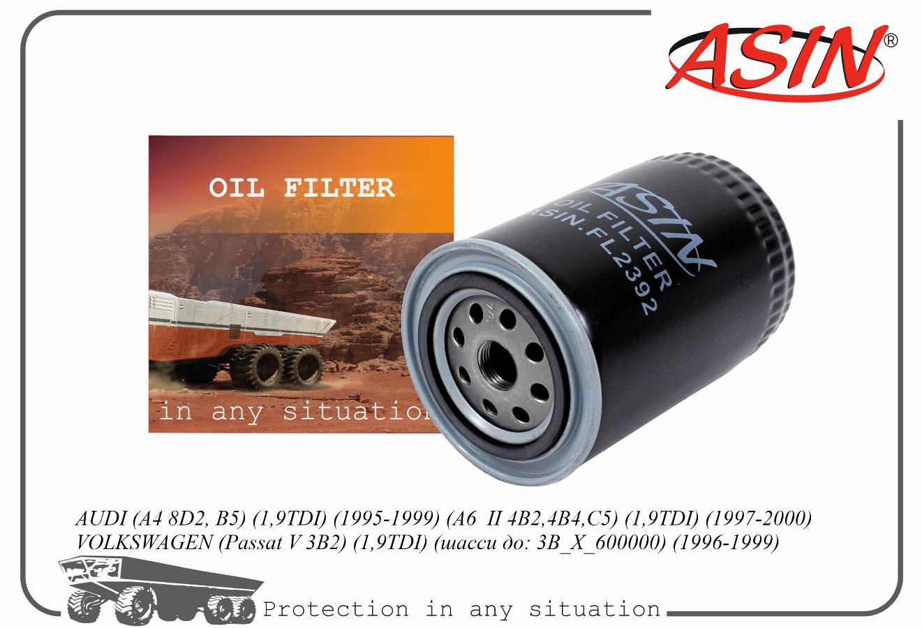 ASIN.FL2392 (028115561E) VW PASSAT B5 1.9 TDI 97- Фильтр масляный asinfl2392