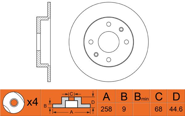 Толщина тормозного диска (мм): 9