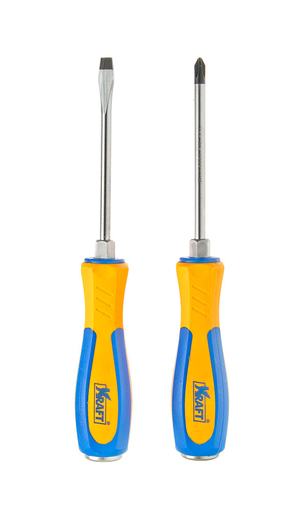 Набор отверток усиленных крестовая PH2*100+шлицевая 6*100 KT700445 Kraft Набор отверток усиленных крестовая PH2*100+шлицевая 6*100 KT700445 Kraft