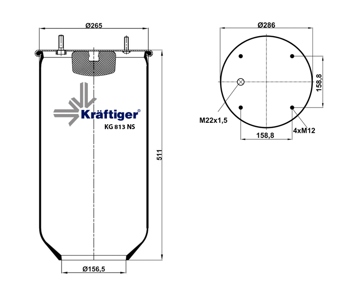 Пневморессора без стакана SAF/ROR Kraftiger kg813ns