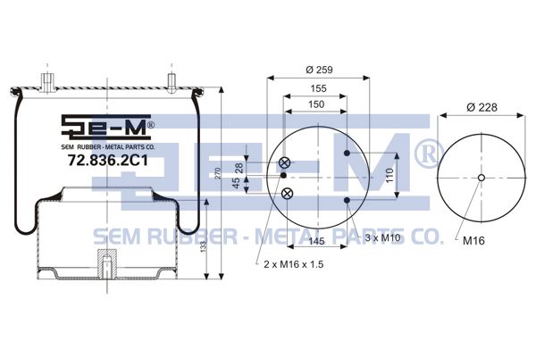 Подушка воздушная со стаканом (3 шп.+2 возд./1 отв.) DAF 728362C1 SEM LASTIK Подушка воздушная со стаканом (3 шп.+2 возд./1 отв.) DAF 728362C1 SEM LASTIK